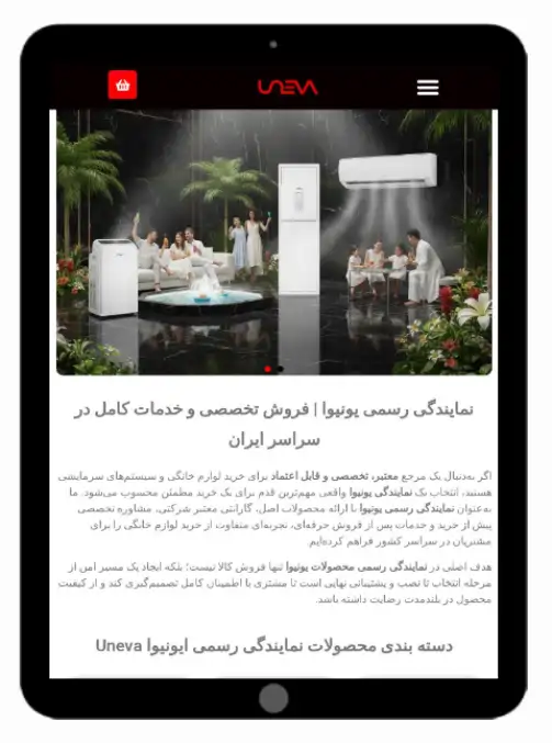 طراحی سایت نمایندگی یونیوا توسط سئو کارما uneva.net